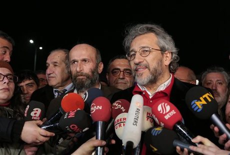The pair had been in detention since November over a story alleging that President Recep Tayyip Erdogan's government had tried to deliver arms to Islamist rebels in Syria.