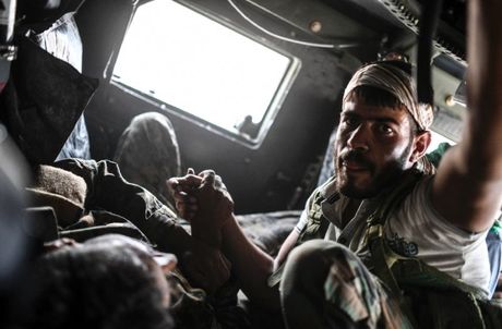 "Don't close your eyes. Stay awake!" the anti-jihadist Syrian fighter yelled at his injured comrade as a Humvee whisked them across the Islamic State group's former stronghold Raqa.