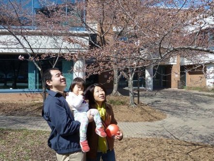 One of those spectators is Japanese diplomat Yoshiyuki Yamada, a new arrival to the U.S. capital who is marking his first American cherry blossom celebration with his wife Akiko and their toddler daughter Haruno.