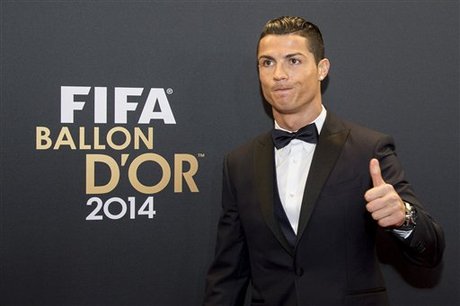 حصل البرتغالي كريستيانو رونالدو مهاجم ريال مدريد متصدر الدوري الاسباني لكرة القدم اليوم الاثنين على جائزة الكرة الذهبية لافضل لاعب في 2014 للمرة الثالثة بعد 2008 و2013.