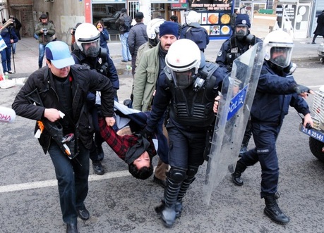 Police fired tear gas and water cannons to break up a demonstration by around 5,000 protesters brandishing effigies of the jailed Kurdish leader Abdullah Ocalan in the main town of Diyarbakir.