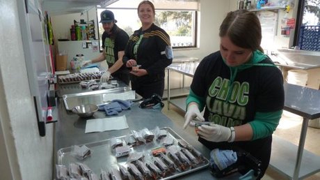 In a commercial kitchen, young workers in T-shirts mix tiny amounts of the oil into dough used for cookies and other goodies -- more than 7,000 per week.