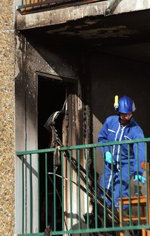 Some 100 firefighters fought the blaze that began in a fourth-floor flat, rescue workers told Agence France Presse. Fifteen of the 18 people who were injured were taken to hospital. Two of them were firefighters who suffered hand burns.