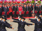 Chanting and carrying a placard calling for the release of Hong Kongers arrested in the crackdown and chanting pro-democracy slogans, the four members of the opposition party League of Social Democrats had attempted to march to the harbor-side Convention Center where the official celebration was being held.