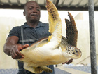 Conservationists and students cheered as three rescued sea turtles, endangered in this part of the world, made their way back into the ocean at a private beach in Nigeria's economic hub of Lagos.