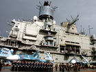 Three Russian warships crossed Turkey's Bosphorus Strait Thursday en route to the eastern Mediterranean, near the Syrian coast, amid concern in the region over potential U.S.-led strikes in response to the Damascus regime's alleged use of chemical weapons.